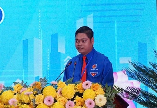 Đồng chí Lê Hoàng Quyết, Bí thư Tỉnh đoàn phát biểu tại đại hội
