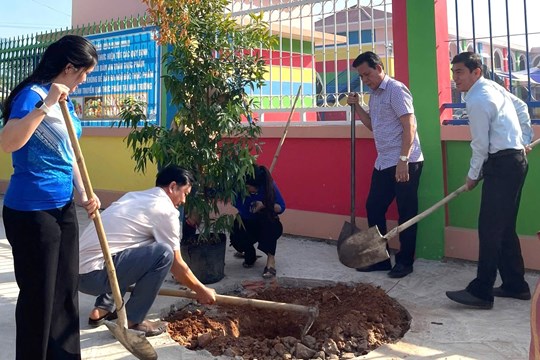 | Lãnh đạo xã Nam Thành tham gia trồng cây xanh trên địa bàn |