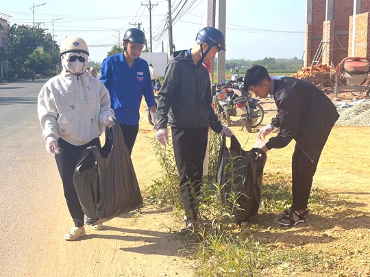 | Đoàn viên thanh niên xã Nam Thành tham gia dọn dẹp vệ sinh môi trường |