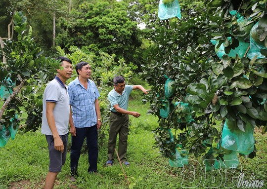 | Mô hình trồng cây ăn quả, rau màu kết hợp với nuôi ong của ông Bùi Quang Tiên, thôn An Bình cho thu nhập trên 200 triệu đồng mỗi năm. |