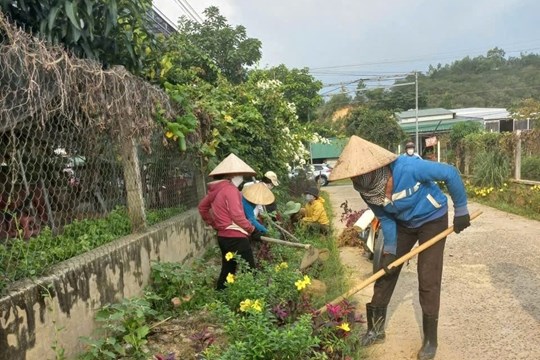 | Hội viên phụ nữ các địa phương trên địa bàn tỉnh Lâm Đồng tích cực thực hiện các tuyến đường hoa |