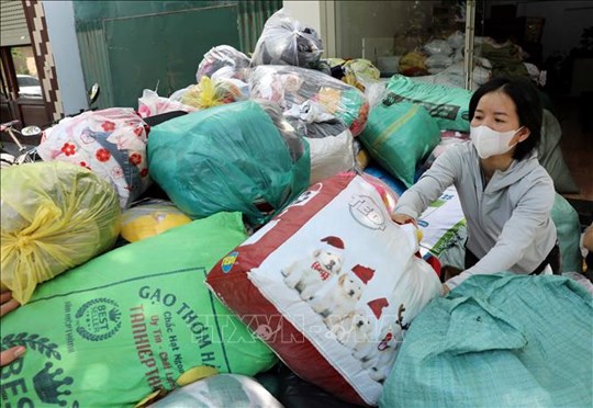 | Rất nhiều vật phẩm được người dân mang tới các điểm tiếp nhận ủng hộ của Câu lạc bộ Thiện nguyện trẻ Thái Bình để chuyển tới đồng bào vùng lũ. Ảnh: Thế Duyệt/TTXVN |
