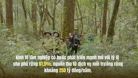 Bên cạnh đó, rừng trồng đạt trên 391,8 nghìn ha, hằng năm khai thác trên 11,6 nghìn ha rừng, sản lượng khai thác gỗ đạt trên 1,1 triệu m³, khoảng 40 nghìn tấn vỏ quế cùng nhiều loại lâm sản khác...