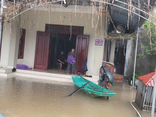 Qua điện thoại, Chủ tịch Ủy ban nhân dân xã Cẩm Duệ Nguyễn Ngọc Nam cho biết, tính đến trưa 2/11 đã có gần 4.000/5.193 hộ dân bị cô lập. Toàn xã có 2.950 hộ dân ở 19/26 thôn bị ngập 1,3-1,8m so với sân nhà.