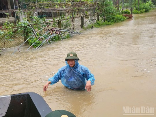 | Tổ trưởng Tổ dân phố Sơn Trình (phường Hà Huy Tập) Phạm Quốc Hòa sẵn sàng đến những nơi dân đang cần trong mùa lũ |