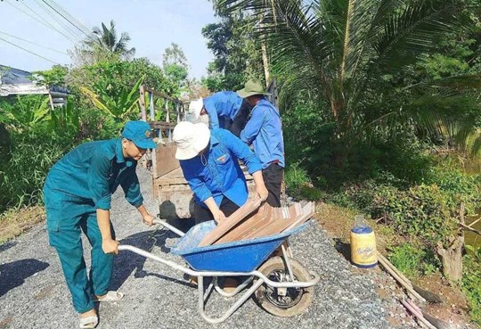 | Ủy ban Mặt trận Tổ quốc Việt Nam xã Long Bình phối hợp cùng các đoàn thể xã tổ chức ra quân thực hiện công trình sửa chữa tuyến đường giao thông nông thôn. |