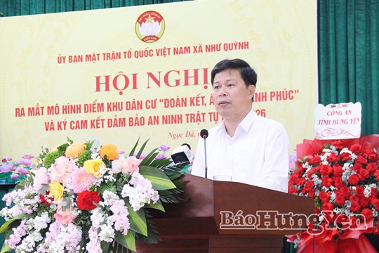 (Mặt trận) - Sáng ngày 16/4, Ban Thường trực Ủy ban MTTQ Việt Nam xã Như Quỳnh (tỉnh Hưng Yên) tổ chức hội nghị ra mắt mô hình điểm khu dân cư “Đoàn kết, ấm no, hạnh phúc” và ký cam kết bảo đảm an ninh, trật tự năm 2026. Đồng chí Trần Quốc Toản, Phó Bí thư Thường trực Tỉnh ủy, Chủ tịch Ủy ban MTTQ Việt Nam tỉnh dự. Cùng dự có đồng chí Ngô Thị Kim Hoàn, Ủy viên Ban Thường vụ Tỉnh ủy, Phó Chủ tịch Thường trực Ủy ban MTTQ Việt Nam tỉnh.
