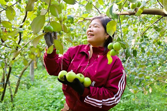 | Người dân xã Yên Phú phấn khởi thu hoạch táo, cây trồng chủ lực mang lại giá trị kinh tế cao cho địa phương. |