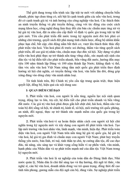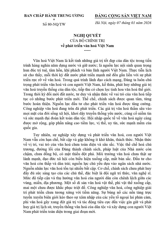 Toàn văn Nghị quyết số 80-NQ/TW của Bộ Chính trị về phát triển văn hóa Việt Nam