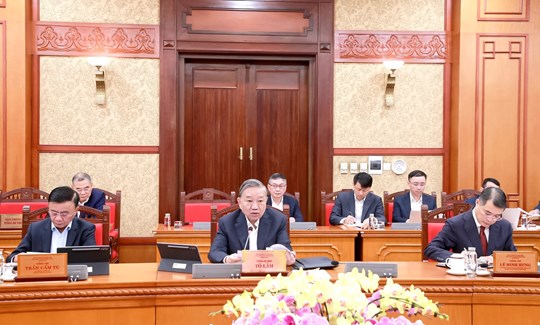 Tổng Bí thư Tô Lâm chủ trì phiên họp của Ban Bí thư về công tác tổ chức Tết Bính Ngọ 2026. (Ảnh: Hiền Hòa).