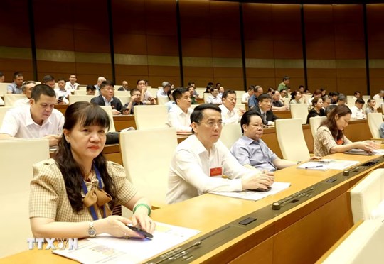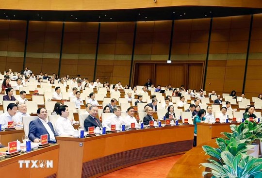 | Đại biểu tham dự Hội nghị tại điểm cầu Nhà Quốc hội (Ảnh: Phương Hoa/TTXVN) |