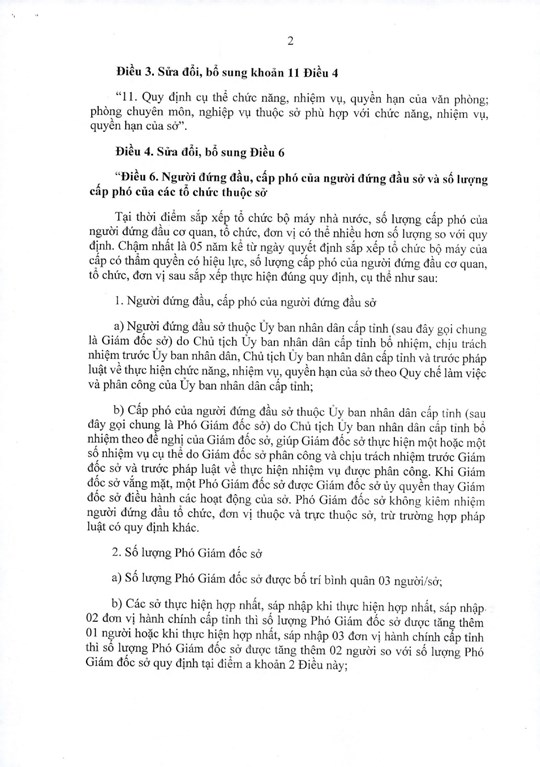 b) Các sở thực hiện hợp nhất, sáp nhập khi thực hiện hợp nhất, sáp nhập 02 đơn vị hành chính cấp tỉnh thì số lượng Phó Giám đốc sở được tăng thêm 01 người hoặc khi thực hiện hợp nhất, sáp nhập 03 đơn vị hành chính cấp tỉnh thì số lượng Phó Giám đốc sở được tăng thêm 02 người so với số lượng Phó Giám đốc sở quy định tại mục 2a;