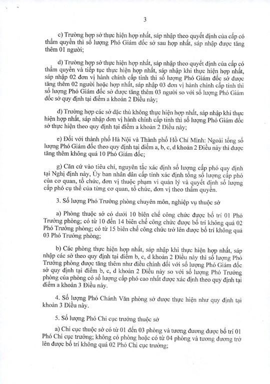 d) Trường hợp sở thực hiện hợp nhất, sáp nhập theo quyết định của cấp có thẩm quyền và tiếp tục thực hiện hợp nhất, sáp nhập khi thực hiện hợp nhất, sáp nhập 02 đơn vị hành chính cấp tỉnh thì số lượng Phó Giám đốc sở được tăng thêm 02 người hoặc hợp nhất, sáp nhập 03 đơn vị hành chính cấp tỉnh thì số lượng Phó Giám đốc sở được tăng thêm 03 người so với số lượng Phó Giám đốc sở quy định tại mục 2a ở trên;