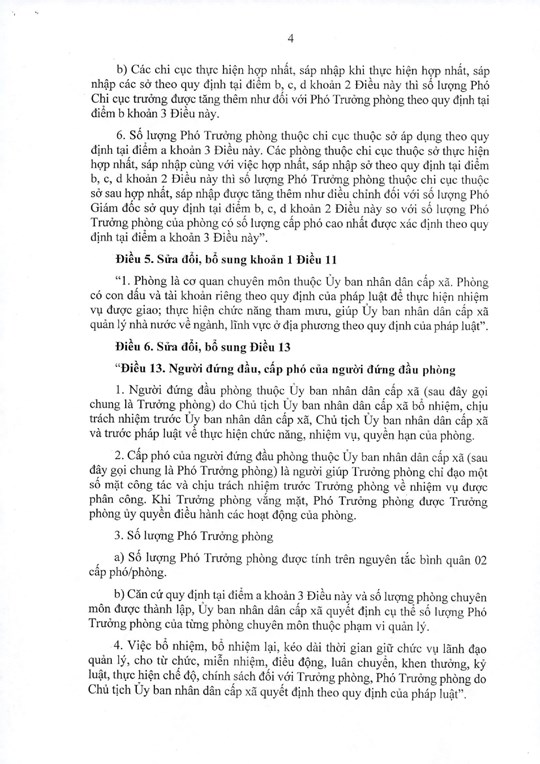 Quy định về số lượng cấp phó sau hợp nhất, sáp nhập