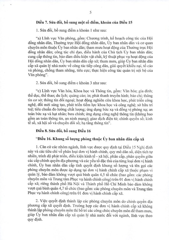 Tăng số lượng phòng chuyên môn thuộc UBND cấp xã