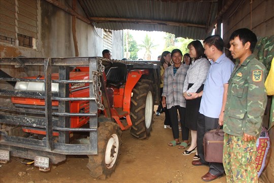 | Anh K'Tông ở bon Sê rê A, xã Tà Đùng nhờ nguồn vốn vay hỗ trợ chuyển đổi nghề đã mua được chiếc máy cày để phục vụ sản xuất cho gia đình |