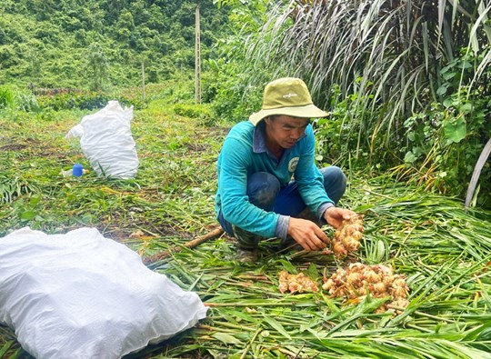 | Người dân xóm Cả Tiểng, xã Tổng Cọt trồng gừng nâng cao thu nhập cho gia đình. |