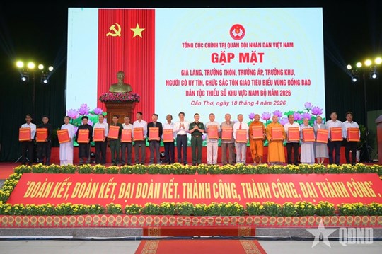 (Mặt trận) - Sáng 18/4, tại thành phố Cần Thơ, Tổng cục Chính trị phối hợp với thành phố Cần Thơ tổ chức chương trình gặp mặt già làng, trưởng thôn, trưởng ấp, trưởng khu, người có uy tín, chức sắc tôn giáo khu vực Nam Bộ năm 2026.