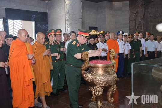 | Đại tướng Nguyễn Trọng Nghĩa và các đại biểu dâng hương, dâng hoa tại Đền Thờ Vua Hùng, thành phố Cần Thơ |