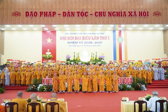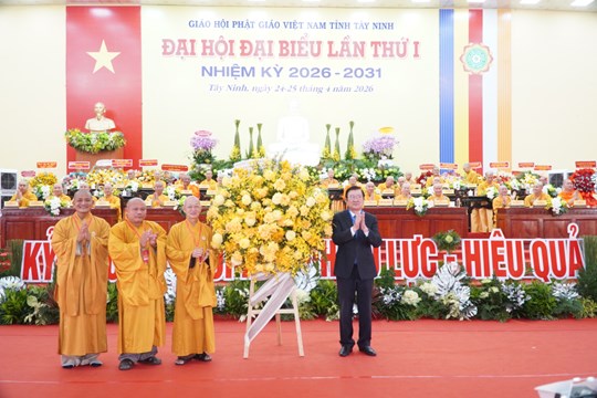 (Mặt trận) - Với chủ đề “Kỷ cương – Đổi mới – Hiệu lực – Hiệu quả”, Đại hội đại biểu Phật giáo tỉnh Tây Ninh, lần thứ I, nhiệm kỳ 2026–2031 được tổ chức trong hai ngày 24 và 25/4, tại Trụ sở Ban Trị sự Giáo hội Phật giáo Việt Nam tỉnh – chùa Pháp Minh (xã Mỹ Hạnh, tỉnh Tây Ninh), với sự tham dự của hơn 400 đại biểu. Sau 2 ngày tổ chức, Đại hội đã hoàn thành toàn bộ chương trình đề ra và thành công tốt đẹp.