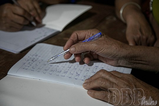 Lớp học chữ viết dân tộc Thái được tổ chức vào các buổi tối |
