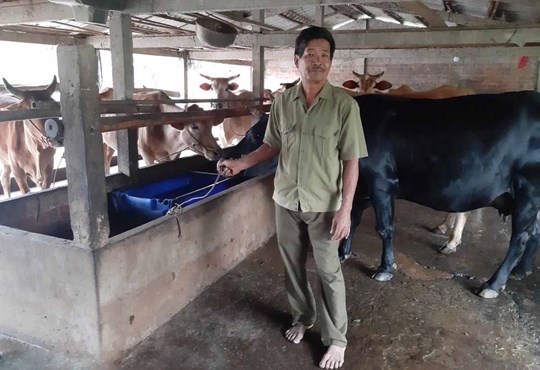 | Nguồn vốn ưu đãi theo Nghị định số 28/2022/NĐ-CP của Chính phủ đã giúp ông Thạch Thia phát triển đàn bò sinh sản, mang lại nguồn thu nhập gần 100 triệu đồng/năm. Ảnh: Phan Bình |