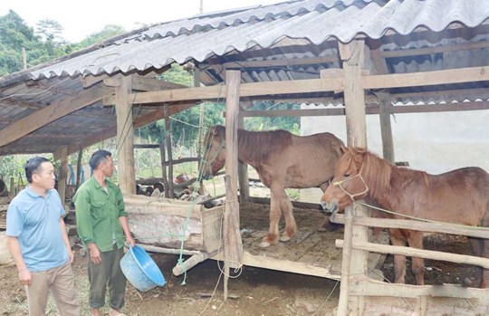 Thăm gia đình ông Sùng A Sử, hộ cận nghèo ở bản Nong Tầu Mông, được hỗ trợ 1 cặp ngựa sinh sản từ Chương trình 1719. Ông Sử phấn khởi nói: Được Nhà nước hỗ trợ ngựa, cán bộ hướng dẫn kỹ thuật chăm sóc, tôi thực hiện đúng quy trình vệ sinh chuồng trại, đảm bảo thức ăn cho ngựa, cặp ngựa phát triển tốt. Ngoài ra, gia đình tích cực trồng ngô, lúa, quyết tâm thoát nghèo trong năm nay.
