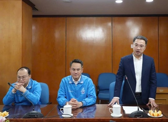 | Linh mục Giuse Trần Xuân Mạnh và đoàn công tác chúc tết Trung ương Hội Liên hiệp thanh niên Việt Nam. Ảnh: Đăng Hải |