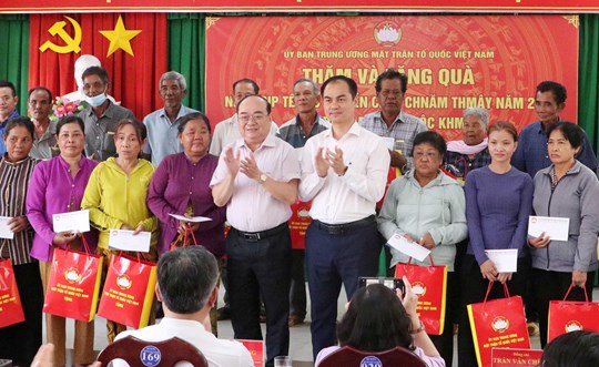 Tại đây, đoàn công tác đã trao 50 phần quà cho các vị chức sắc, chức việc, Achar và người có uy tín, ghi nhận đóng góp trong vận động đồng bào chấp hành chủ trương, chính sách, giữ gìn bản sắc văn hóa. Đồng thời, đoàn trao 100 suất quà cho các gia đình đồng bào Khmer nghèo, gia đình chính sách, góp phần giúp bà con đón Tết vui tươi, đầm ấm.