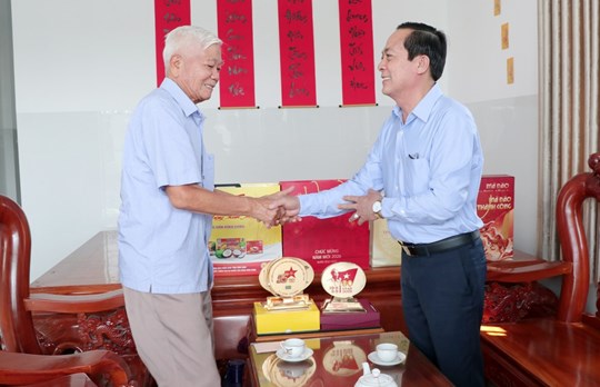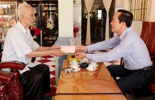 Phó Bí thư Tỉnh ủy Lâm Minh Đằng thăm, tặng quà ông Lâm Phú, nnguyên Ủy viên Trung ương Đảng, nguyên Phó Chủ nhiệm Ủy ban Dân tộc và Miền núi của Quốc hội.