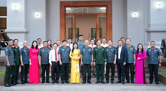 | Đoàn Đại biểu tỉnh An Giang chụp ảnh lưu niệm với lãnh đạo Bộ Tư lệnh Hiến binh - Quân đội Hoàng gia Campuchia |