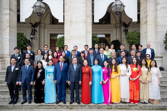 Về cộng đồng người Việt Nam tại Italia, Đại sứ cho biết, hiện có khoảng 5.500 người, sinh sống trên khắp các vùng của Italia, trong đó tập trung đông tại khu vực phía Bắc, miền Trung. Đời sống bà con cơ bản ổn định, từng bước hội nhập xã hội sở tại. Lực lượng sinh viên đông đảo với khoảng 2.000 bạn đang theo học tại các trường đại học và cơ sở đào tạo của Italia. Hiện có 500 chức sắc, tu sĩ và giáo dân đang học tập tại các cơ sở giáo dục của Vatican, là một nét đặc thù rất riêng của cộng đồng người Việt tại Italia.