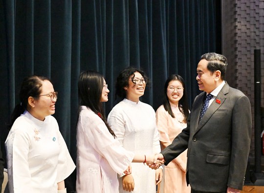 Trong không khí ấm áp, thân tình, thay mặt lãnh đạo Đảng, Nhà nước, Chủ tịch Quốc hội Trần Thanh Mẫn gửi tới các sinh viên và lưu học sinh tiêu biểu của Việt Nam ở Italia lời thăm hỏi chân thành và những tình cảm tốt đẹp nhất từ Tổ quốc.