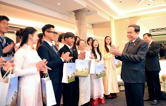 Khẳng định, chủ trương của Đảng đã đầy đủ, Quốc hội đã thể chế hóa, tạo điều kiện thuận lợi để các sinh viên, lưu học sinh học tập, làm việc, cống hiến, Chủ tịch Quốc hội mong muốn các sinh viên, lưu học sinh sau khi học tập sẽ trở về phục vụ đất nước, phục vụ nhân dân, hướng về Tổ quốc.