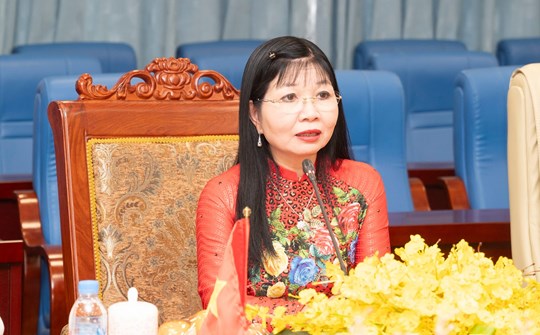 (Mặt trận) - Chiều 31/3, đoàn công tác của Tỉnh ủy An Giang do Phó Bí thư Tỉnh ủy, Chủ tịch Ủy ban MTTQ Việt Nam tỉnh Trần Thị Thanh Hương làm trưởng đoàn đến thăm và chúc Tết Chôl Chnăm Thmây năm 2026, tại tỉnh Kandal (Vương quốc Campuchia).