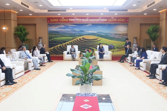 (Mặt trận) - Trong khuôn khổ chuyến thăm và làm việc tại Việt Nam, tối 21/3, Đoàn đại biểu cấp cao Hội đồng Quốc gia Mặt trận Đoàn kết Phát triển Tổ quốc Campuchia do bà Men Sam An - Phó Chủ tịch Đảng Nhân dân Campuchia, Chủ tịch Hội đồng Quốc gia Mặt trận Đoàn kết Phát triển Tổ quốc Campuchia, Chủ tịch Hội Hữu nghị Campuchia - Việt Nam làm Trưởng đoàn đã đến chào xã giao lãnh đạo Tỉnh ủy, HĐND, UBND, Ủy ban MTTQ Việt Nam tỉnh Lào Cai.