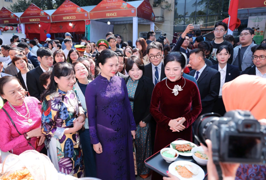 Tham dự khai mạc Liên hoan có: Bà Ngô Phương Ly, Phu nhân Tổng Bí thư Tô Lâm; bà Hà Thị Nga, Ủy viên Trung ương Đảng, Phó Chủ tịch Ủy ban Trung ương Mặt trận Tổ quốc Việt Nam, các Lãnh đạo, Nguyên Lãnh đạo Bộ Ngoại giao và Phu nhân/Phu quân, các vị Đại sứ, Trưởng Cơ quan đại diện và Phu nhân/Phu quân, các tổ chức Quốc tế, các địa phương, doanh nghiệp và đông đảo người dân đến tham quan, thưởng thức ẩm thực.