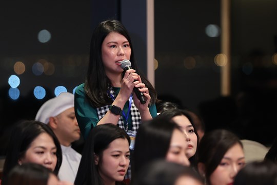 Bạn Dương Thùy Linh, thay mặt các sinh viên Việt Nam tại Kuwait hứa mỗi sinh viên sẽ góp phần xây dựng những nhịp cầu và vun đắp mạng lưới hữu nghị bền vững và rộng khắp giữa hai nước.