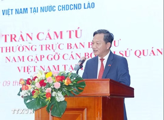 Thường trực Ban Bí thư khẳng định, Đại sứ quán Việt Nam tại Lào không chỉ là cầu nối chính trị, ngoại giao giữa hai nước mà còn là ngôi nhà chung của cộng đồng người Việt Nam tại Lào, là biểu tượng của tình hữu nghị và đoàn kết.