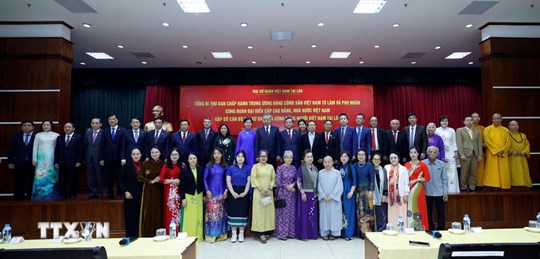 (Mặt trận) - Trong khuôn khổ chuyến thăm cấp Nhà nước Cộng hòa Dân chủ Nhân dân (CHDCND) Lào, dự Lễ kỷ niệm 50 năm Quốc khánh nước CHDCND Lào và đồng chủ trì Cuộc gặp cấp cao giữa Đảng Cộng sản Việt Nam và Đảng Nhân dân Cách mạng Lào, chiều tối 1/12, tại Thủ đô Viêng Chăn, Tổng Bí thư Tô Lâm và Phu nhân cùng Đoàn đại biểu cấp cao Việt Nam đã gặp gỡ cán bộ Đại sứ quán Việt Nam và cộng đồng người Việt Nam tại Lào.