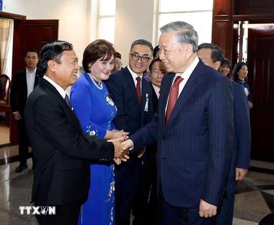 | Tổng Bí thư Tô Lâm và các đại biểu. (Ảnh: Thống Nhất/TTXVN) |
