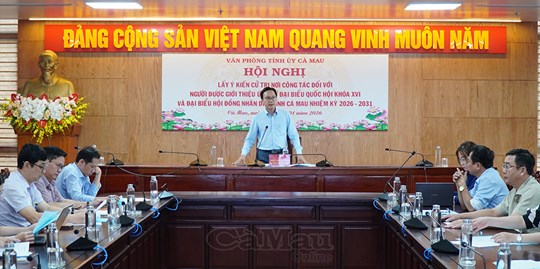 (Mặt trận) - Sáng 15/1, Văn phòng Tỉnh ủy Cà Mau tổ chức Hội nghị lấy ý kiến cử tri nơi công tác đối với người được giới thiệu ứng cử đại biểu Quốc hội khoá XVI và đại biểu HĐND tỉnh Cà Mau, nhiệm kỳ 2026-2031.
