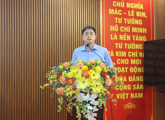 | Trưởng Ban Xây dựng Đảng - Đảng ủy phường Vĩnh Tuy Trần Anh thông tin kết quả công tác xây dựng Đảng, hệ thống chính trị, phát triển KT-XH của phường |