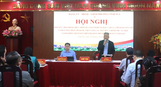Kết luận Hội nghị, Bí thư Đảng ủy, Chủ tịch HĐND phường Vĩnh Tuy Nguyễn Quang Trung nhấn mạnh, việc tiếp xúc, đối thoại giữa người đứng đầu cấp ủy, chính quyền với MTTQ, các tổ chức CT-XH và Nhân dân trên địa bàn được phường xác định là nhiệm vụ chính trị quan trọng trong công tác lãnh đạo, chỉ đạo của cấp ủy Đảng và công tác quản lý, điều hành của chính quyền. Đây chính là dịp để người đứng đầu cấp ủy, chính quyền trực tiếp lắng nghe, nắm bắt tâm tư, nguyện vọng, kiến nghị của Nhân dân và những vấn đề liên quan quyền lợi hợp pháp, chính đáng của người dân, qua đó phát huy quyền làm chủ của Nhân dân.