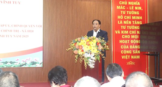 Tại Hội nghị, Ủy viên Ban Thường vụ, Trưởng Ban Xây dựng Đảng - Đảng ủy phường Vĩnh Tuy Trần Anh đã thông tin kết quả công tác xây dựng Đảng, hệ thống chính trị, phát triển KT-XH thời gian qua và nhiệm vụ trọng tâm 2 tháng cuối năm 2025 của phường; Ủy viên Ban Thường vụ Đảng ủy, Chủ tịch Ủy ban MTTQ Việt Nam phường Vĩnh Tuy Dương Minh Đức thông tin việc triển khai thực hiện kế hoạch tổ chức hội nghị tiếp xúc, đối thoại của phường.