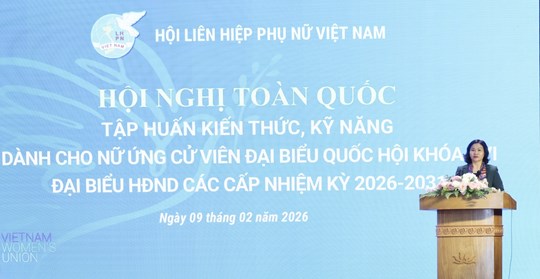 (Mặt trận) - Sáng 9/2, Trung ương Hội LHPN Việt Nam tổ chức Tập huấn kiến thức, kỹ năng cho nữ ứng cử viên đại biểu Quốc hội khóa XVI, đại biểu Hội đồng nhân dân các cấp nhiệm kỳ 2026-2031 theo hình thức trực tiếp và trực tuyến. Ủy viên Trung ương Đảng, Phó Chủ tịch Ủy ban Trung ương MTTQ Việt Nam, Chủ tịch Hội LHPN Việt Nam Nguyễn Thị Tuyến chủ trì lớp tập huấn.