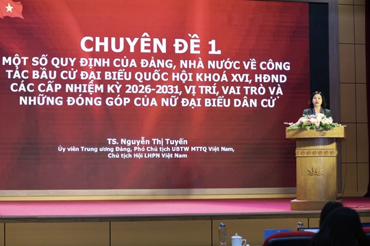 Trong khuôn khổ chương trình bồi dưỡng kiến thức cho các ứng cử viên tiềm năng, bà Nguyễn Thị Tuyến, Ủy viên Trung ương Đảng, Phó Chủ tịch Ủy ban Trung ương MTTQ Việt Nam, Chủ tịch Hội LHPN Việt Nam, đã trình bày chuyên đề Một số quy định của Đảng, Nhà nước về công tác bầu cử Đại biểu Quốc hội khóa XVI, HĐND các cấp nhiệm kỳ 2026-2031; vị trí, vai trò và những đóng góp của nữ đại biểu dân cử.