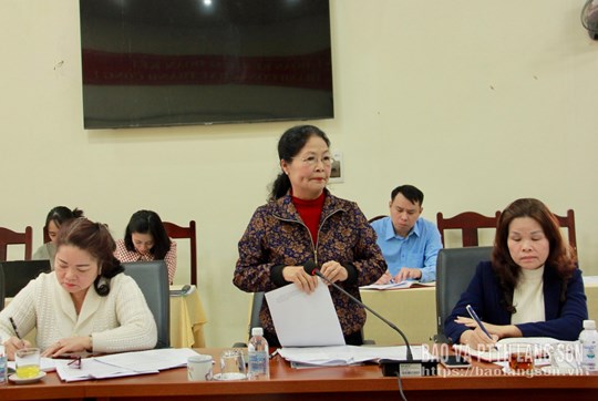 | Bà Trần Thị Hoa Sinh, Chủ nhiệm Hội đồng tư vấn Dân chủ - Pháp luật, Ủy ban MTTQ Việt Nam tỉnh phát biểu ý kiến tại hội nghị |
