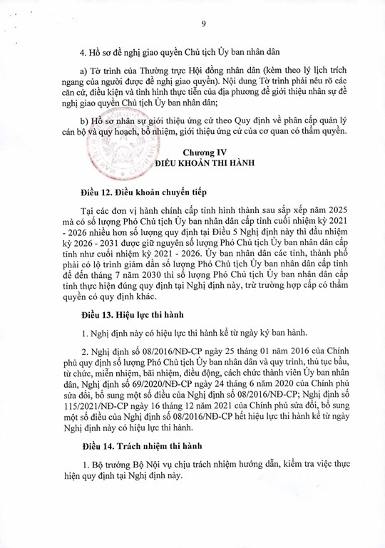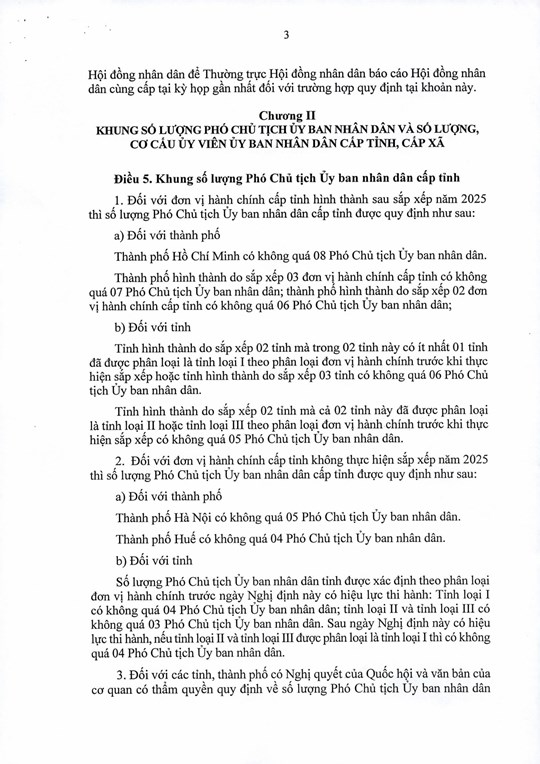 Nghị định nêu rõ, đối với các tỉnh, thành phố có Nghị quyết của Quốc hội và văn bản của cơ quan có thẩm quyền quy định về số lượng Phó Chủ tịch UBND tỉnh, thành phố khác với quy định tại Nghị định này thì thực hiện theo Nghị quyết của Quốc hội và văn bản của cơ quan có thẩm quyền.