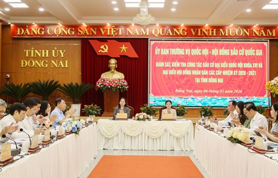 (Mặt trận) - Ngày 6/2, Đoàn giám sát, kiểm tra của Hội đồng Bầu cử quốc gia và Ủy ban Thường vụ Quốc hội do Bí thư Trung ương Đảng, Phó Chủ tịch nước, Phó Chủ tịch Hội đồng Bầu cử quốc gia Võ Thị Ánh Xuân làm Trưởng đoàn đã khảo sát thực tế tại Tổ bầu cử số 32, khu vực bỏ phiếu phường Trấn Biên và làm việc với Ủy ban Bầu cử tỉnh Đồng Nai.